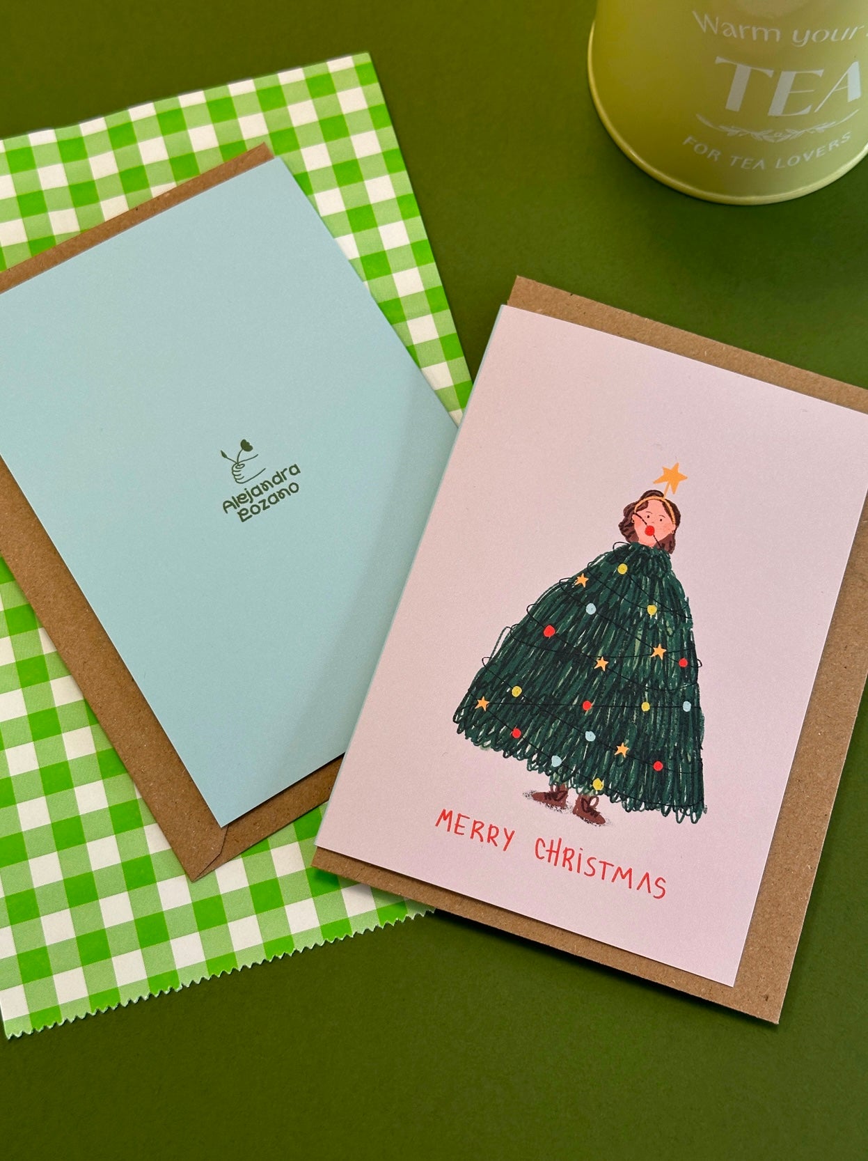 Tarjeta de felicitación Navidad con sobre kraft.