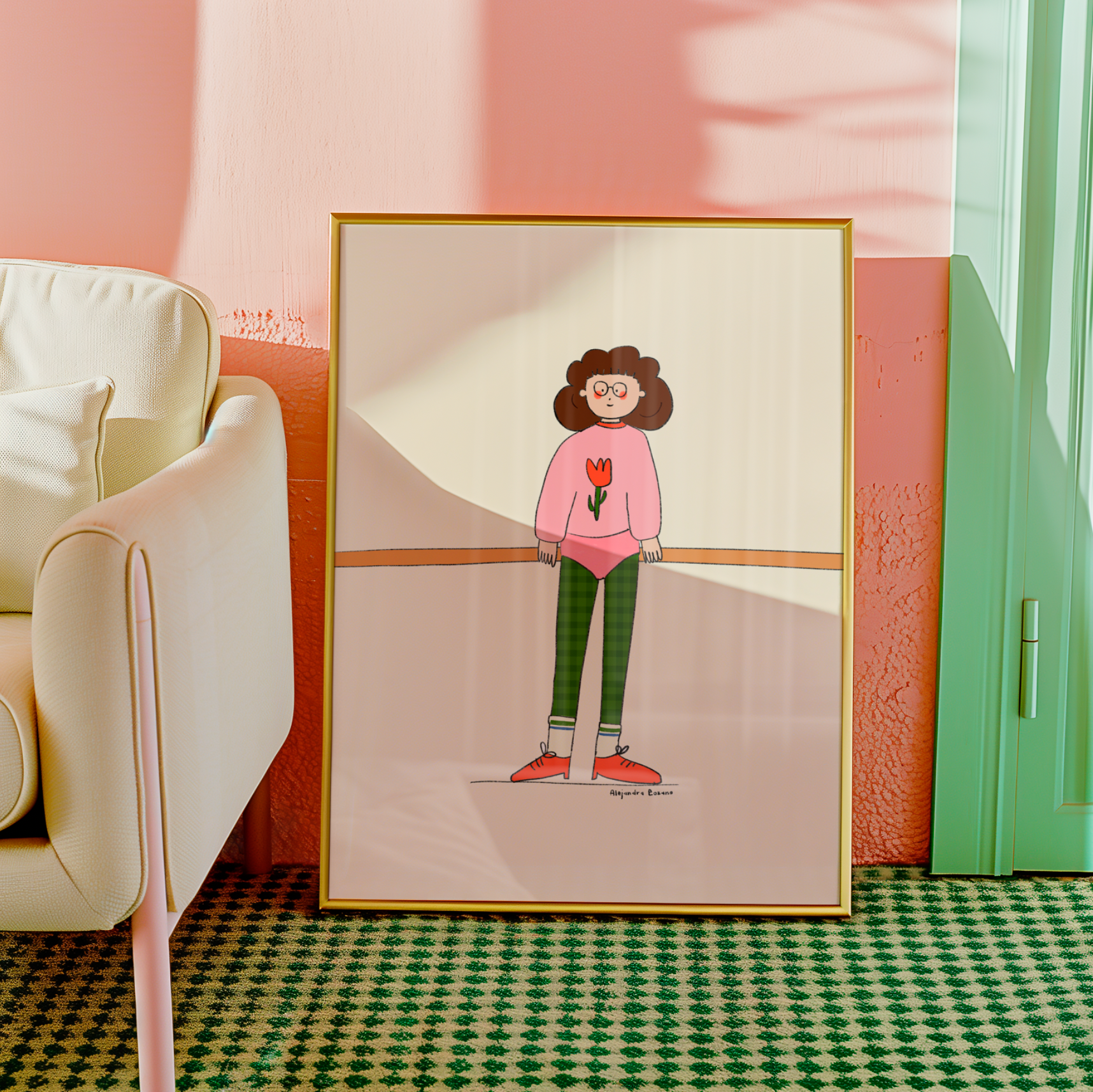 Pilates Barre Girl es una ilustración que invita a vibrar con el movimiento y con la armonía del cuerpo en calma.